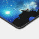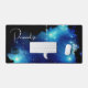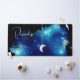 A swatch of blue galaxy with stars and a hanging crescent moon. In colours of blue, white, black and teal. An elegant view of cosmic space.