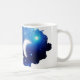 A swatch of blue galaxy with stars and a hanging crescent moon. In colours of blue, white and teal. An elegant view of cosmic space.