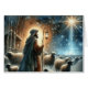 The front of this Christian Christmas card has a beautiful rendering of the First Christmas night, with a shepherd and his sheep watching the brilliant Star of Bethlehem. The inside top has the verses from Luke 2, and your custom text on the lower half. All the text is customisable, so you may replace the verses with your own choosing, if you wish.