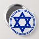 Round button with an image of a royal blue Star of David and royal blue double border on white. See the entire Hanukkah Buttons & Pins collection under the ACCESSORIES category in the HOLIDAYS section.