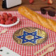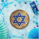 7" round paper plates with a blue and faux gold Star of David design match Editwerks' 9" round paper plates, 7" paper bowls, paper cups, paper cocktail and luncheon napkins. Celebrate the Festival of Lights, Passover, or Rosh Hoshanah.