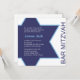 A modern white and blue Bar Mitzvah invitation featuring the Star of David.