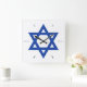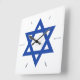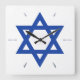 Star of David Blue White Hour Hands Square Wall Clock