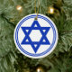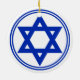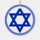 Round ceramic ornament with an image, on both sides, of a royal blue Star of David and royal blue double border on white. See the entire Hanukkah Ornament collection under the HOME category in the HOLIDAYS section.