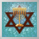 Star of David Gold Menorah on Teal Vines Art Print