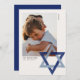 Hand-painted watercolor blue Star of David Hanukkah photo card.
