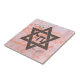 The rustic ceramic tile features a Star of David with the Hebrew word "chai", meaning "life". The metal ornament and marble stone effects are digitally created. The stunning coaster or trivet adds an elegant touch as a decorative display piece in any room.
