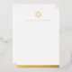Flat, blank stationery notecards featuring a simple real foil Star of David with the name below in a masculine font. At the bottom is a real foil border. Choose between rose gold, gold and silver coloured foil.