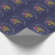 Stylish, elegant HANUKKAH BLESSINGS Wrapping Paper. Design shows a gold coloured MENORAH with multicolored STAR OF DAVID and silver grey DREIDEL. At the top there is curved text which says BARUCH ATAH, ADONAI (Blessed are You, O God) and underneath the text reads HANUKKAH BLESSINGS. The background colour is midnight blue. Matching items are available in the HANUKKAH Collection by Berean Designs.
