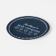 Star of David Pattern Bar Mitzvah paper plate features five star patterns aligned horizontally on a striped background, all within a white circular border. The title 'Bar Mitzvah' and the specific date are in blue. Available for bat mitzvahs as well. © Morning 6
