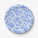 Serve your holiday food on this paper plate that features the Star of David in a variety of designs and shades of blue and white on a white background. Great for Hanukkah, Passover, or other holidays and celebrations.