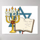 This design is the star of david. The star has a candle holder in front of it and a book with a passage. This star of david design looks great on this Poster