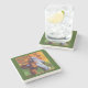 The coasters are gorgeous, a quality feel and heavy weight. They look like a precious archeological find. A rustic stone juxtaposed with a modern floral black and white print. I like the way the print goes slightly imperfect on the cut stone edges giving them a kind-of natural beauty.