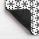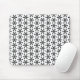 A mouse pad with an attractive pattern made up of a star or snowflake asterisk type motif.