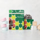 Fun bright Christmas family photos wrapping gift paper in shades of green and white. Customise with your own three special family photos, family name or message. Currently reads Merry Christmas from the Rodríguez Family. Uniquely designed by Sarah Trett.