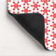 A mouse pad with an attractive pattern made up of a star or snowflake asterisk type motif.