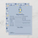Have your baby shower guests fill out this cute baby predictions and advice card that features a cute hand drawn illustration baby penguin holding a yellow star. This adorable winter penguin themed advice card makes for a wonderful keepsake and is a fun activity for your arctic penguin themed baby shower! The back of this card features a hand painted blue and yellow textured star pattern that is fun and whimsical.