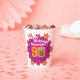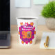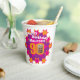 Personalise these bright 90th birthday party paper cups with your own birthday name and photograph in the 0 of 90 on both sides one for your photo now and one from your past. Fun star pattern and text and personalised photo design in bright pink and orange yellow. Ideal for using at a girls ninetieth birthday party. Other matching items are available. © Original graphic art and design by Sarah Trett for www.mylittleeden.com