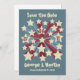 Perfect for your 4th of July or patriotic Wedding, these Save The Date Announcements are one-of-a-kind! Featuring muted patriotic colours and stars that explode from a central vanishing point. Customisable text and background colour. Matching postage, T-shirts, tote bags and gifts also available. PinkInkArt original!