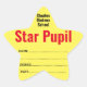 A bright yellow star shaped sticker for a school to say Star Pupil. A reward from the teacher. Space available for a teacher to sign and date.