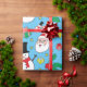 Star Santa Claus Snowman Christmas Pattern Blue Wrapping Paper