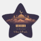 Convey your best wishes for Ramzan Kareem to family, friends, and loved ones by sending our beautiful Ramzan Mubarak greeting stickers featuring a mosque silhouette in a star-shaped sticker and a crescent on a night sky background. It has beautiful Eid wishes. Stick it on eid cards, eid gifts, Eidi bags, or eid party favour bags.