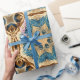Star shapes Art Deco,Blue and Brown Wrapping Paper