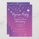 Cute pajama party invitation for tween girls features a purple background with white star burst. Our popular slumber party birthday invite is available in our shop in a varies stylish colour choices.