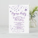 Cute pajama party invitation for tween girls features an contemporary crisp white background with FAUX glitter purple star burst. Our popular slumber party birthday invite is available in our shop in a varies stylish colour choices.