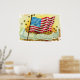 Beautiful vintage postcard image of the American Flag with stars bursting around and the banner reading The Star Spangled Banner in Triumph Shall Wave. Reprinted on this canvas print with painted look and framing options available.