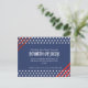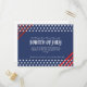 Invite your loved ones to a festive Fourth of July celebration with this striking invitation card. The design features a bold navy blue background with red stripes forming a triangular design at the top right and bottom left corners. Three lines of white stars adorn the top and bottom, creating a powerful design inspired by the American flag. The centerpiece can be customised with your party details, inviting guests to honour the freedoms we cherish while enjoying the revelry of Independence Day.