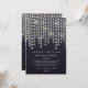Beautiful dark blue wedding invitation with shining vertical hanging star-shaped string lights and informal invitation wording. Perfect for evening or midnight weddings under the stars!