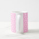 A mug with an attractive retro pattern made up of an abstract geometric star, wheel or segmented citrus fruit like motif.