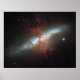 To celebrate the Hubble Space Telescope's 16 years of success, the two space agencies involved in the project, NASA and the European Space Agency (ESA), released this image of the magnificent starburst galaxy, Messier 82 (M82). This mosaic image is the sharpest wide-angle view ever obtained of M82. The galaxy is remarkable for its bright blue disc, webs of shredded clouds, and fiery-looking plumes of glowing hydrogen blasting out of its central regions. Throughout the galaxy's centre, young stars are being born 10 times faster than they are inside our entire Milky Way Galaxy. The resulting huge concentration of young stars carved into the gas and dust at the galaxy's centre. The fierce galactic superwind generated from these stars compresses enough gas to make millions of more stars. In M82, young stars are crammed into tiny but massive star clusters. These, in turn, congregate by the dozens to make the bright patches, or "starburst clumps," in the central parts of M82. The clusters in the clumps can only be distinguished in the sharp Hubble images. Most of the pale, white objects sprinkled around the body of M82 that look like fuzzy stars are actually individual star clusters about 20 light-years across and contain up to a million stars. The rapid rate of star formation in this galaxy eventually will be self-limiting. When star formation becomes too vigourous, it will consume or destroy the material needed to make more stars. The starburst then will subside, probably in a few tens of millions of years. Located 12 million light-years away, M82 appears high in the northern spring sky in the direction of the constellation Ursa Major, the Great Bear. It is also called the "Cigar Galaxy" because of the elliptical shape produced by the oblique tilt of its starry disc relative to our line of sight. The observation was made in March 2006, with the Advanced Camera for Surveys' Wide Field Channel. Astronomers assembled this six-image composite mosaic by combining exposures taken with four coloured filters that capture starlight from visible and infrared wavelengths as well as the light from the glowing hydrogen filaments.