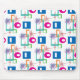 Reminiscent of Mid Century Modern designs from the 1950's and 1960's, this lively retro geometric pattern features teal, orange, green and pink abstract shapes along with purple starbursts and red linear elements. The background colour may be easily customised.