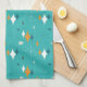 Starburst Mid Century Modern Pattern in Teal Tea Towel