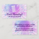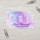 Watercolor style girly starburst background with needle and thread, sewing pins and spool of thread on this business card for a seamstress or alterations business.