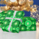 Digitally generated fractal starburst and pinwheel graphic in shades of pale mint to leaf green, accented with white, on a dark pine green background