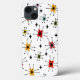 This phone case has a mid-century modern design of starbursts in retro colours and stars.