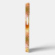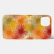 This phone case has a Boho design of starbursts in gamboge (gold), red, berry, and green.
