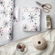 This wrapping paper mid-century modern design has starbursts scattered all over with circles on the end