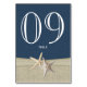 Starfish and Burlap Navy Blue Table Number Card
