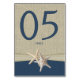 Starfish and burlap printed table number card to compliment our Beach Amore' invitation set in navy blue, can be personalised and ordered individually. All parts of this card are printed. There is no real burlap or starfish attached.
