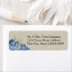 Blue hydrangeas and starfish over burlap, rustic country beach theme address label.