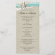 Aqua ribbon, burlap, lace and starfish rustic beach Wedding program card is two sided with ceremony details on front and wedding party participants on the back.