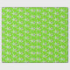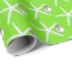 Starfish and ornament pattern Christmas wrapping paper on a roll. Bright lime green paper with white sea stars. Each sea star has a little silver white ornament hanging from one of it’s legs. Perfect for gift giving in a warm climate.