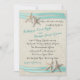 Starfish and aqua ribbon destination beach wedding invitation for your wedding by the sea. Weathered seashore style background in warm sand tones.