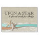 Rustic beach look of burlap and lace and accented with ribbon and starfish. Printed design "wishes for baby" card.