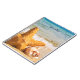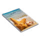 A personalised notebook with a cute photograph of a starfish positioned upright in the sand. Underneath it's arms are 2 little seashells resting comfortably. Set on a beach with waves crashing in the background.