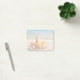 Sticky notes a cute photograph of a starfish positioned upright in the sand. Underneath it's arms are 2 little seashells resting comfortably. Set on a beach with waves crashing in the background.